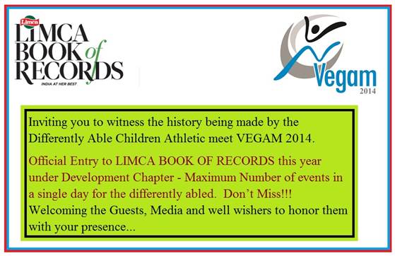 Inviting you to witness the history being made by the differently able children athletic meet VEGAM 2014.