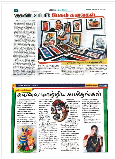 I gave motivational speech in the gathering of 250 working staffs at Arvind Eye Hospital, Madurai. I took one week class to the students about the art of paper quilling at Sowbagya Orphanage Illam at Gandhigram . The rural livelihood Director, collectorate Dindigul District invited me to give a guest lecturer at youth mobilization program, at Natham, Dindigul District regarding, “How a person can be a successful entrepreneur with their own effort”.