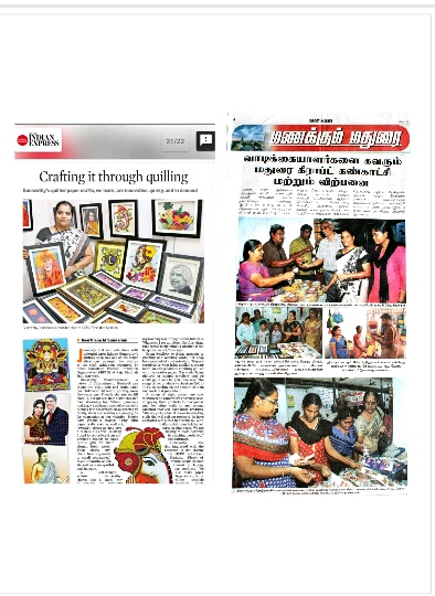 The Lions Club of Thirunagar, Madurai honoured me by giving the “WOMEN OF EXCELLENCE” award and Government of Tamilnadu, Poombuhar gave me the “District Award” to my hand made creations. I was honoured by Dindigul Queencity Club. NABARD regional office Chennai honoured me on women’s day celebration. Also Innerwheel club of Sivakasi honoured me as with women of empowerment award. Media supported me a lot and they published articles about me in many leading newspapers, this gave me a good publicity and I got more business orders.